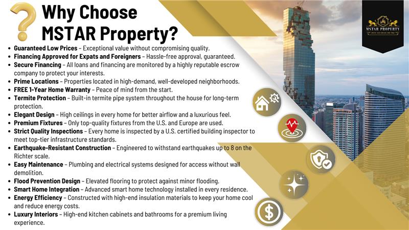 We provide complimentary consultations and guarantee your safety throughout the process. With Mstar Property, you’ll have the support and expertise needed for a smooth and enjoyable retirement in Thailand